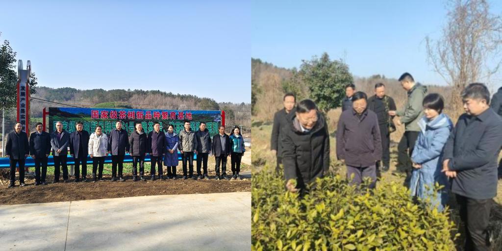 为深化校地协同合作,以‘豫茶1号’等茶树新品种繁育推广为核心抓手,赋能地方茶产业转型升级,1月8日上午,茶学与食品公司党委书记邵罕、高级实验师袁正仿、博士季高翔和大别山实验室副主任郭桂义、信阳市茶产业发展中心副主任甘友艳,赴光山县凉亭乡,围绕‘豫茶1号’繁育推广、配套栽培技术优化及产业现代化发展等开展专项调研。光山县农业农村局总农艺师王在群,凉亭乡党委书记谈靖等人陪同调研。