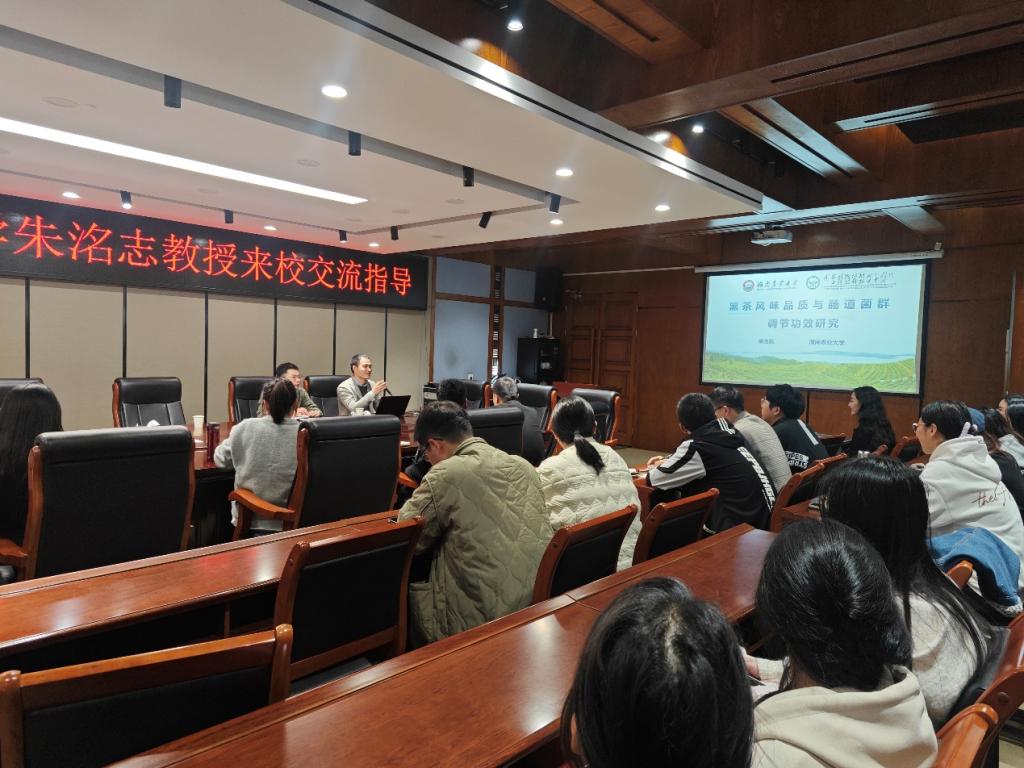 11月6日,湖南农业大学朱洺志教授于逸夫楼321为公司师生作题为“黑茶风味品质与肠道菌群调节功效研究”的学术报告。报告由williamhill中国官方网站副教授陈震主持,本院教师及研究生、本科生参会,现场济济一堂,交流氛围热烈。
